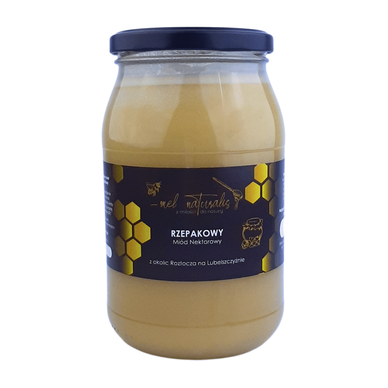 Miód rzepakowy 1200g, kremowy i łagodny w smaku.